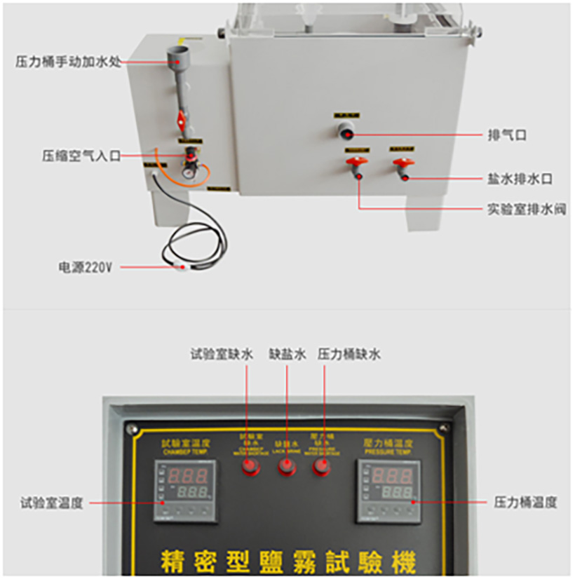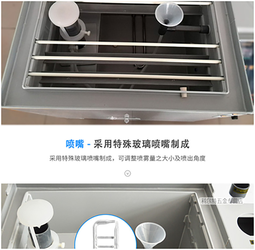 ☆精密玻璃喷嘴(PYREX)雾气扩散均匀,并自然落于试片,连续工作4000小时无结晶盐阻塞;