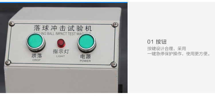 落球冲击试验机是一种用来测试塑料、陶瓷、压克力、 玻璃织维等材料及涂料之坚固度,本设备符合Js745 A43o试验标准,本机以规定一定重量之钢球调整在一定的高度,使钢球白由落下打击试料,视其受损程度,以此来判断试验产品的质量,本设备深受广大生产商的好评,是一款比较理想的设验设备。