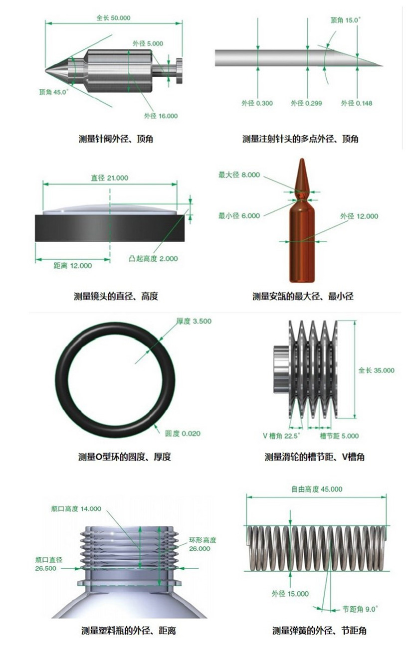 可测量平面上的任何几何尺寸,包括直径、半径、长度、角度、宽度、高度、深度、点到点的距离、点到线的距离、圆心距等等。具有零件拍照功能,可以更直观的进行比对。软件可随时分析测量数据4)测量数据可直接导入word,excel中进行分析。具有自动寻边的功能,使测量快速、精l确。快捷键功能,可使操作者快速、便捷的进行测量7)可保存为dxf格式,与autocad软件无缝传输数据8)可直接在autocad中编辑、使用、使测量结果处理更方便,快捷。