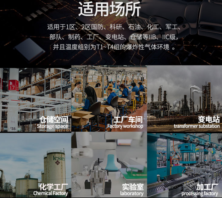 9、产品具有EX级标准,可用温度组别T2、T3、T4的爆炸性气体混合物的危险场所,防爆等级达到(ExdiaIIBT4、内胆IICT4),产品经过国家级防爆检测站检验,并具有国家级防爆合格证。